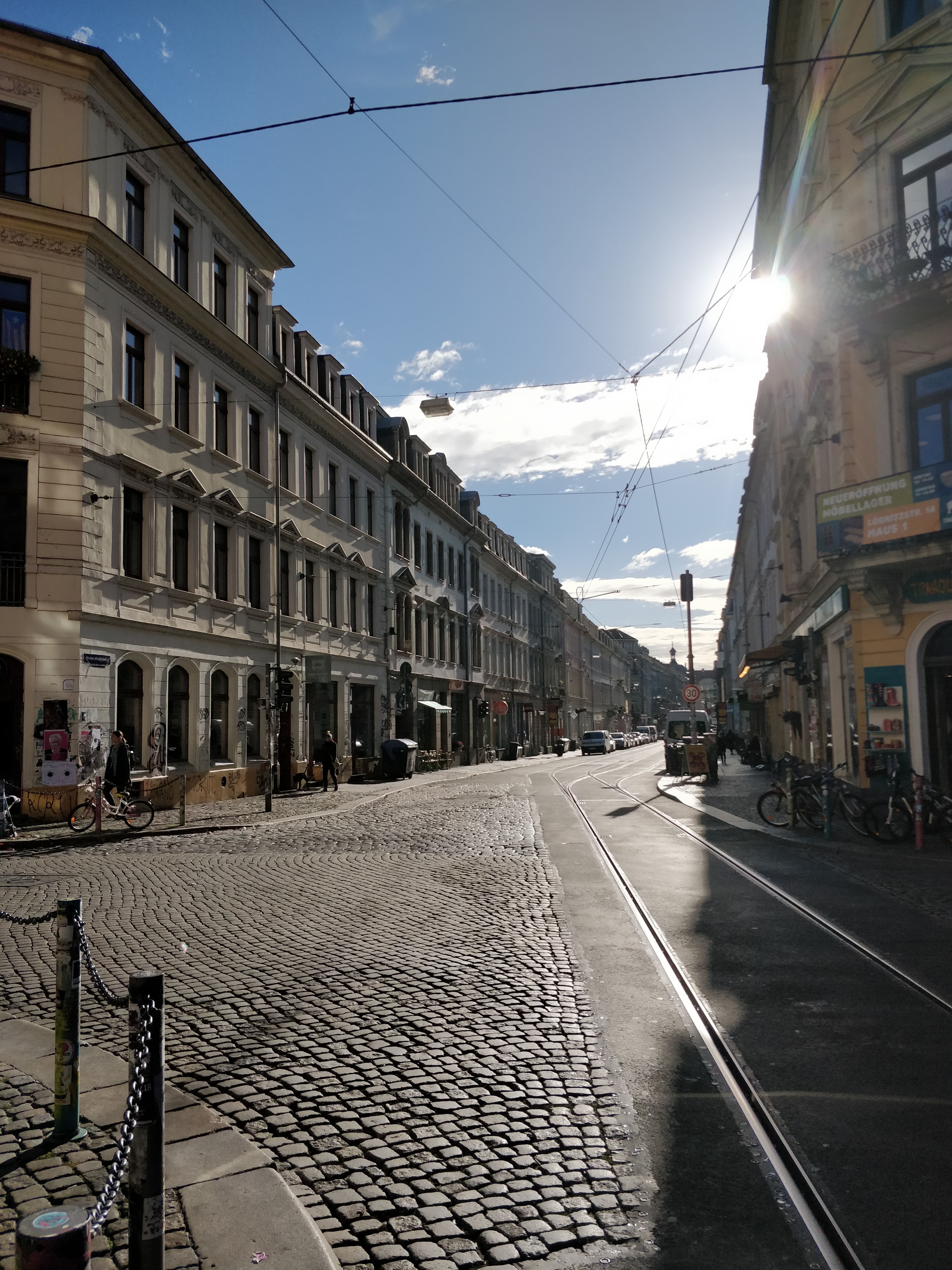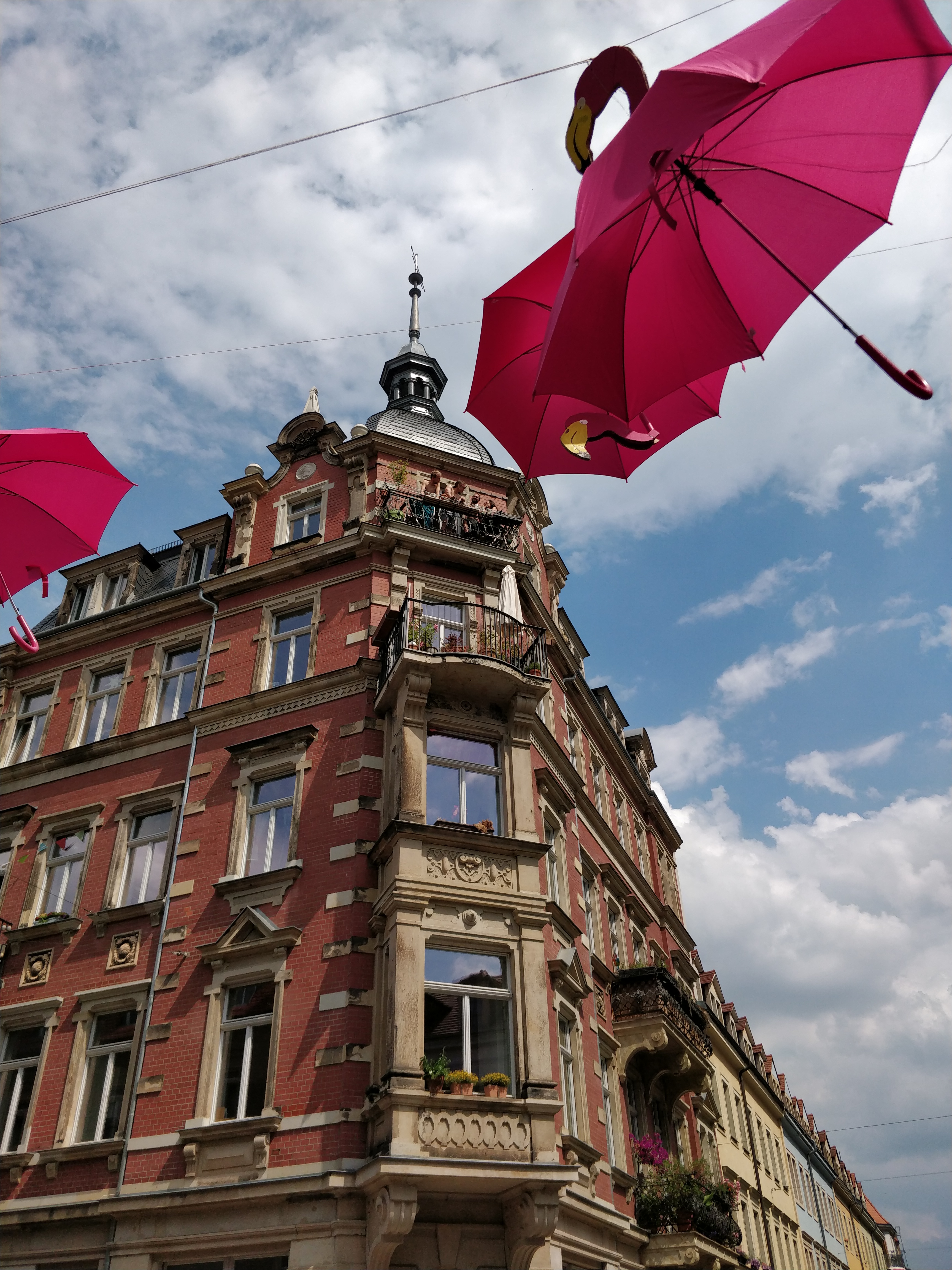 Wir setzen unseren Weg auf der Louisenstraße fort, in der noch die Dekorationen der Bunten Republik Neustadt – kurz BRN – hängen. Die BRN geht auf das Jahr 1990 zurück, in dem vom 22. – 24. Juni in einem kleinen Teil der Dresdner Neustadt eine Republik ausgerufen wurde. Genauer gesagt, die Bunte Republik Neustadt. 1993 wurde diese dann wieder aufgelöst. Heute kennen sie viele als buntes Straßenfest, das die Neustadt erfüllt und viele Touristen anlockt.